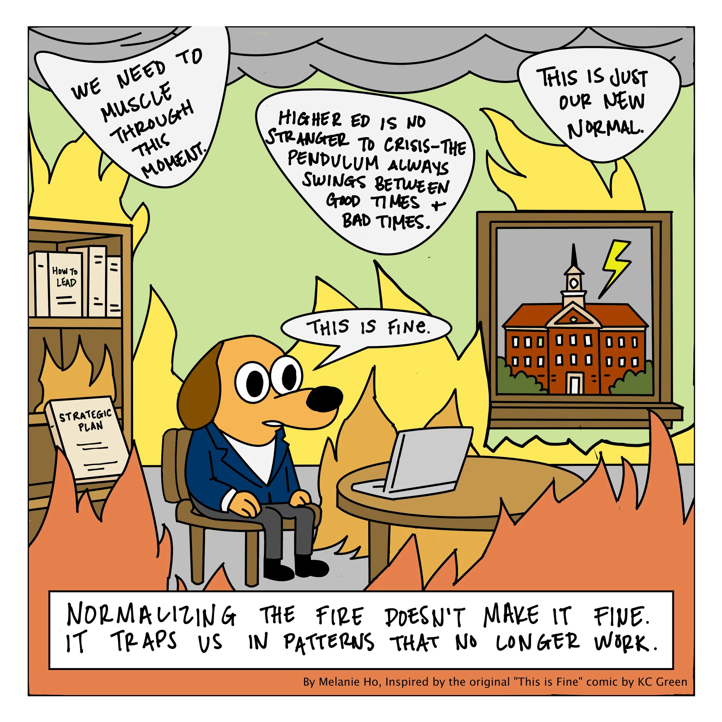 By Melanie Ho, inspired by the original "This is Fine" comic by KC GreenHypernormalization is what happens when we act as if “the way things are” is normal — or even okay — because imagining an alternative feels impossible. It shows up in the language we reach for in difficult moments: “this is just our new normal,” “the pendulum always swings back,” “we just need to muscle (or muddle) through.”